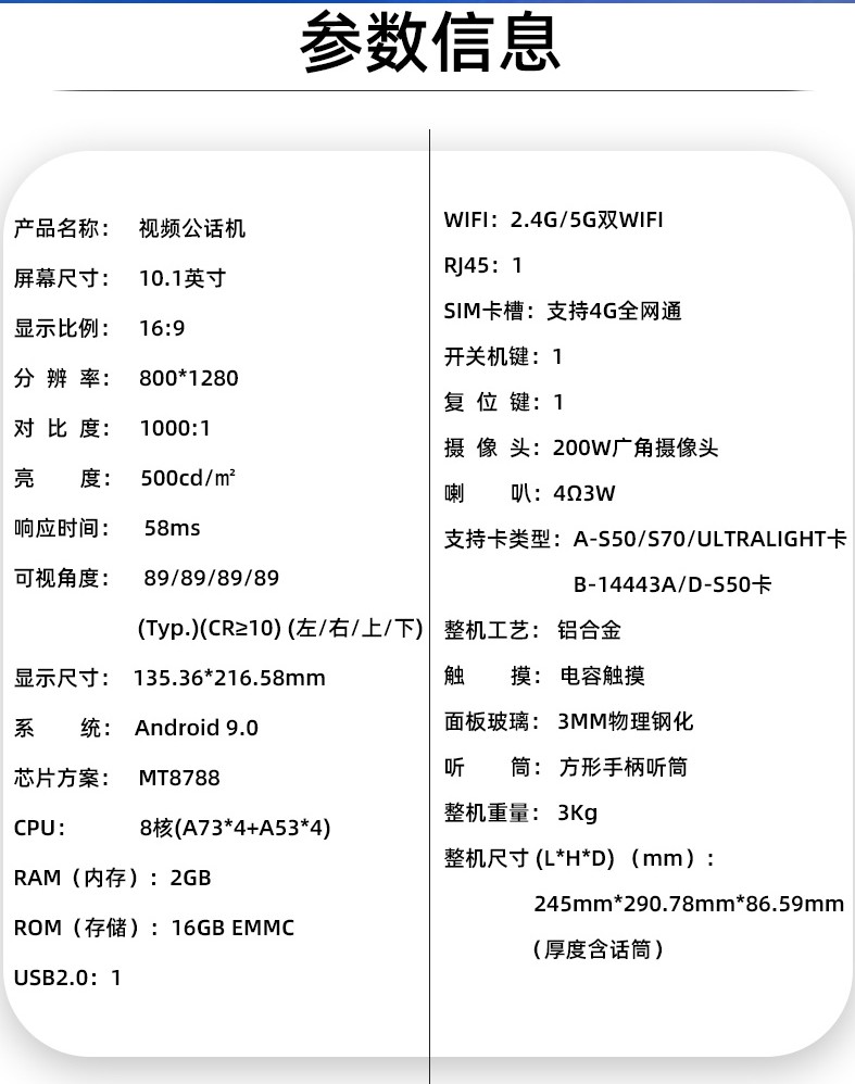 適用場景:10.1寸視頻公話機 校園視頻電話機 微信視頻電話機