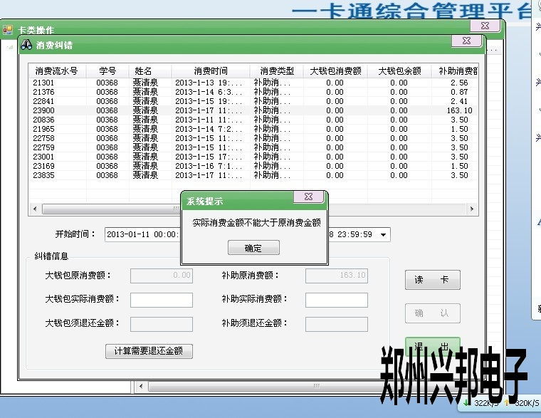 問:在做消費糾錯的時候提示“實際消費金額不能大于原消費金額”