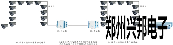 在某智能樓宇監控項目當中,每個樓層都有多個攝像頭對各個地點進行監控,利用485總線對攝像頭進行控制,施工單位在施工過程當中發現,如果按照原先的485總線型的拓撲結構的話,485總線主干線必須要經過每一個攝像頭,這樣將導致485線的距離非常的長,而且在后期的維護當中,由于所有的攝像頭都是經過一個485總線,如果在485總線上有一個攝像頭出現問題,有可能導致整個系統不能運行。他們使用485中繼器將原先的485總線型的拓撲結構改造成樹型的拓撲結構,大大簡化了施工,并且極其方便后期的維護。極大的節省了費用。