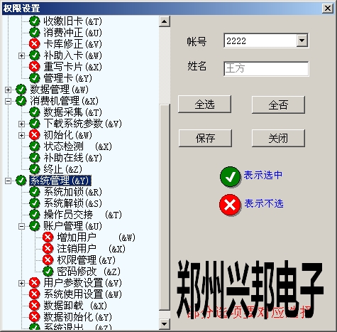 [文章內容簡介]:售飯水控系統軟件中關于操作人員權限分配的說明
