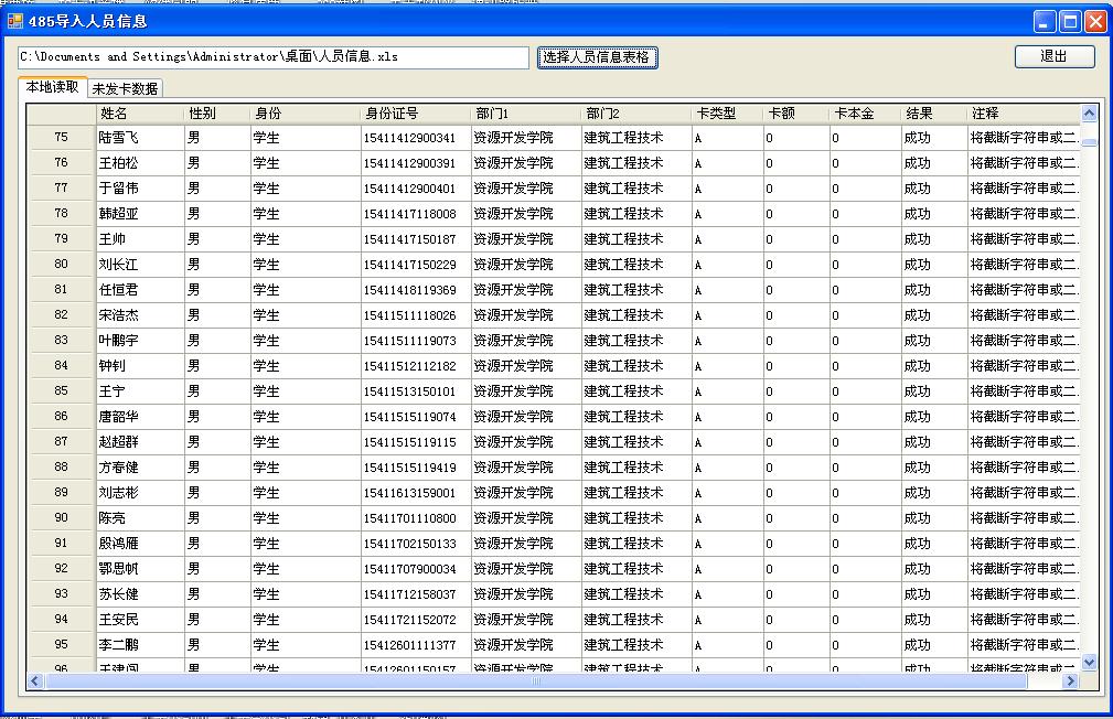 1、先安裝一個批量制卡的軟件,然后有一個人員信息表,在這個表里把人員信息都填寫好。